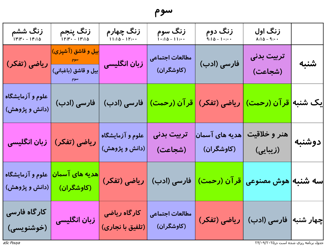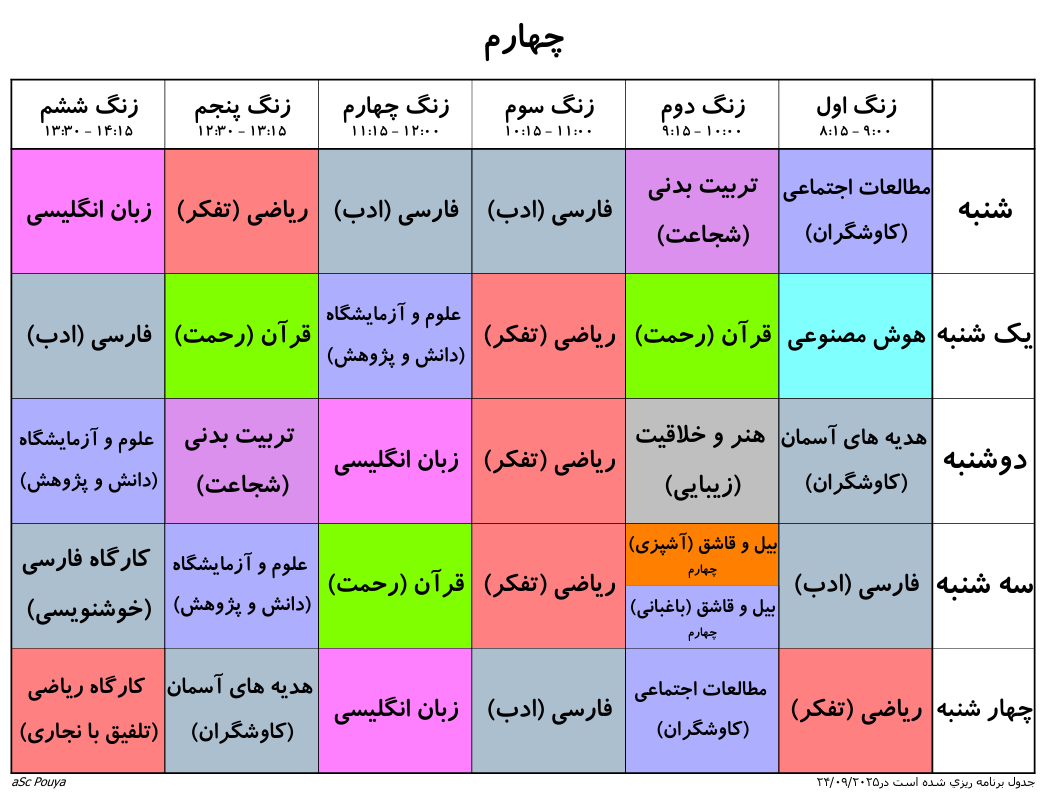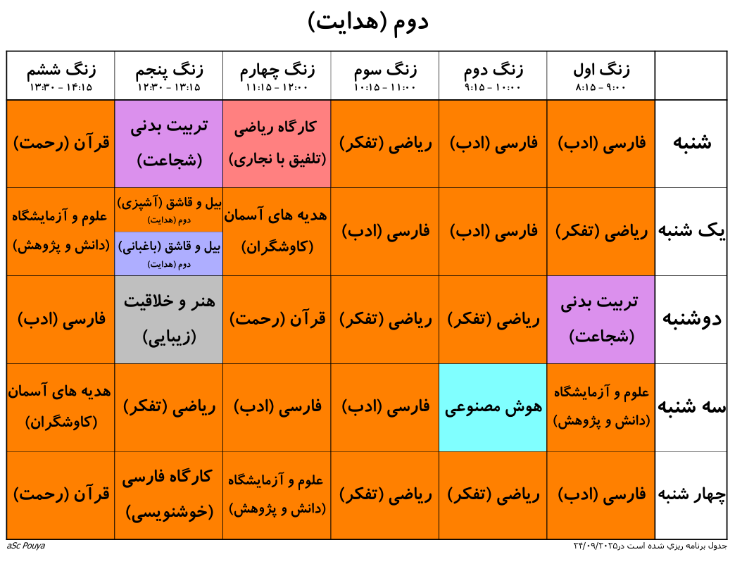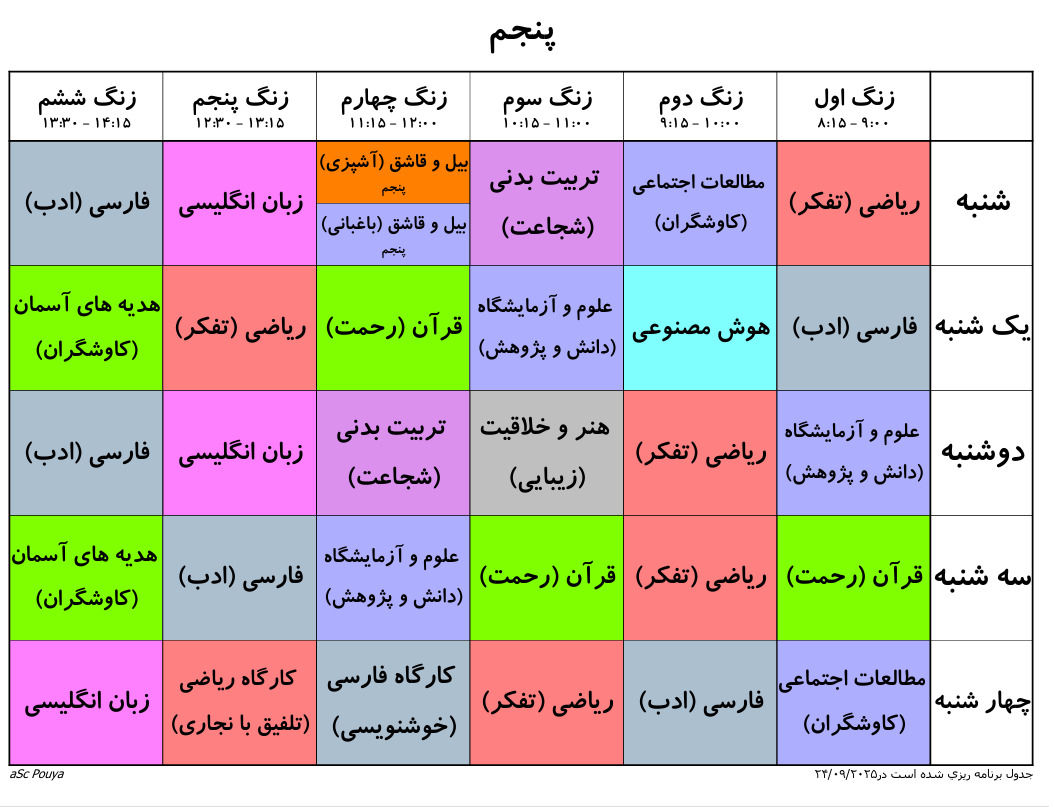- برنامه هفتگی دانش آموزان پسرانه شمس هدایت (پادهانیس )سال تحصیلی 1405-1404